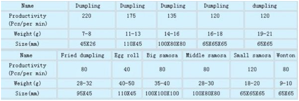 Mesin Cetak Dumpling otomatis ini bisa mencetak aneka bentuk makanan jenis dumpling, samosa, pastel dan yang sejenis. Detail bentuk akhir produk silahkan lihat gambar di bawah