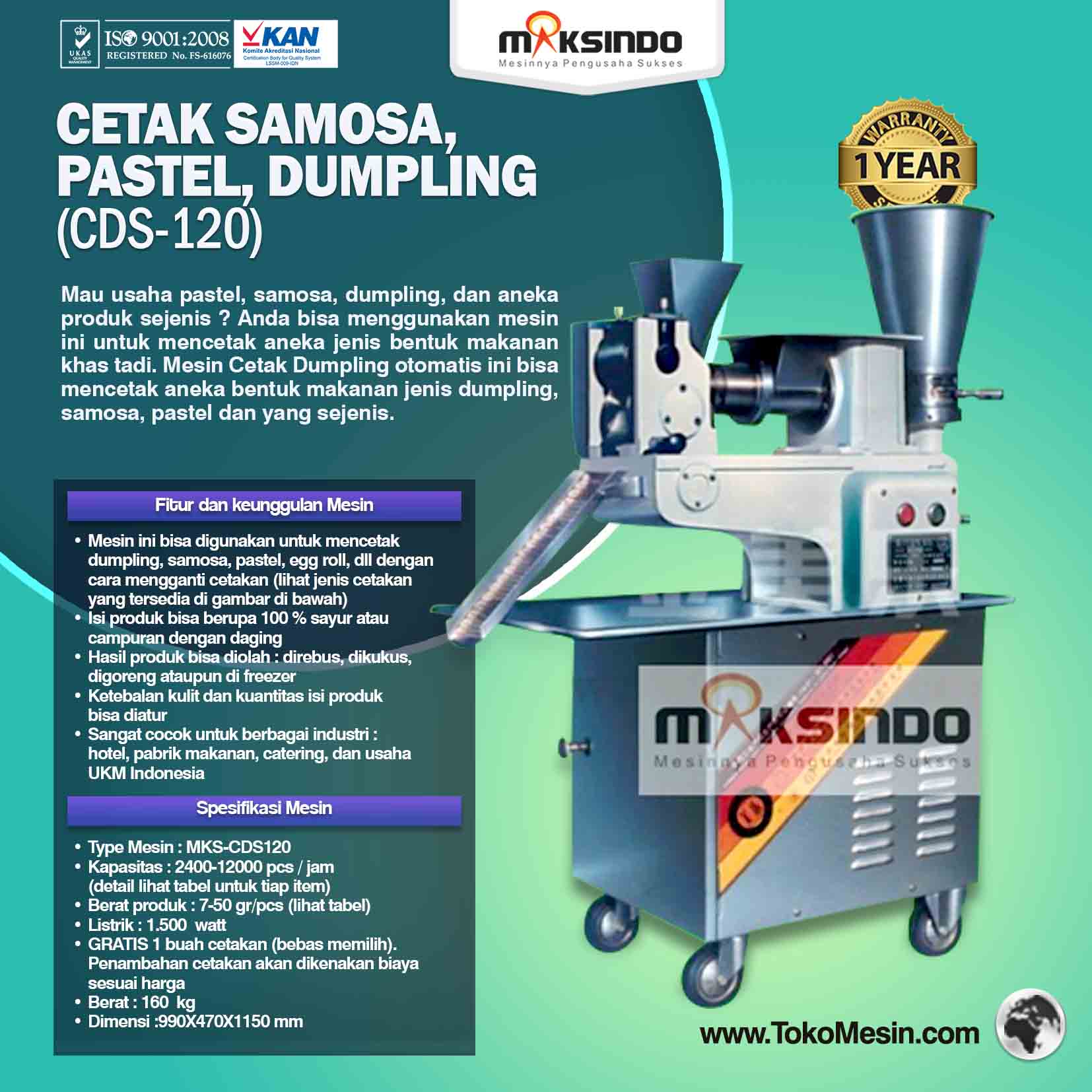Jual Cetak Samosa, Pastel, Dumpling (CDS-120) di Medan