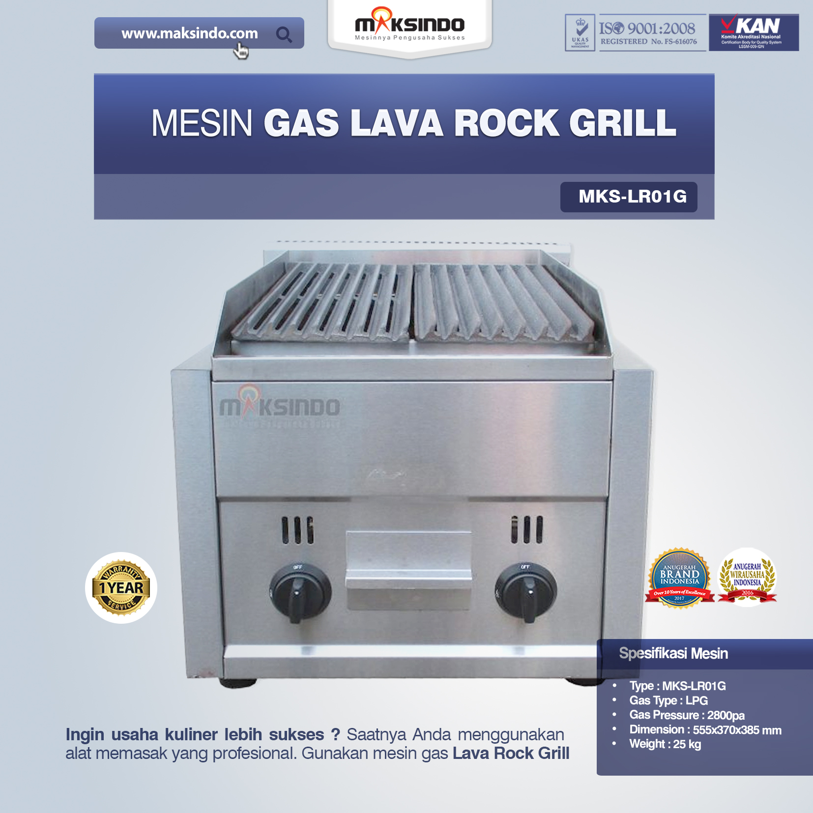 Ingin usaha kuliner lebih sukses ? Saatnya Anda menggunakan alat memasak yang profesional. Gunakan mesin gas lava rock grill dari Maksindo ini.