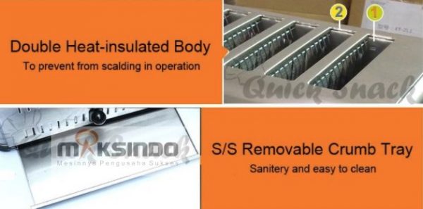 Maksindo menyediakan mesin pembuat roti bakar stainless steel, yang biasa disebut dengan bread toaster atau slot toaster. Mesin ini lazim digunakan di hotel-hotel. Namun sangat kami rekomendasikan juga untuk Anda keluarga modern