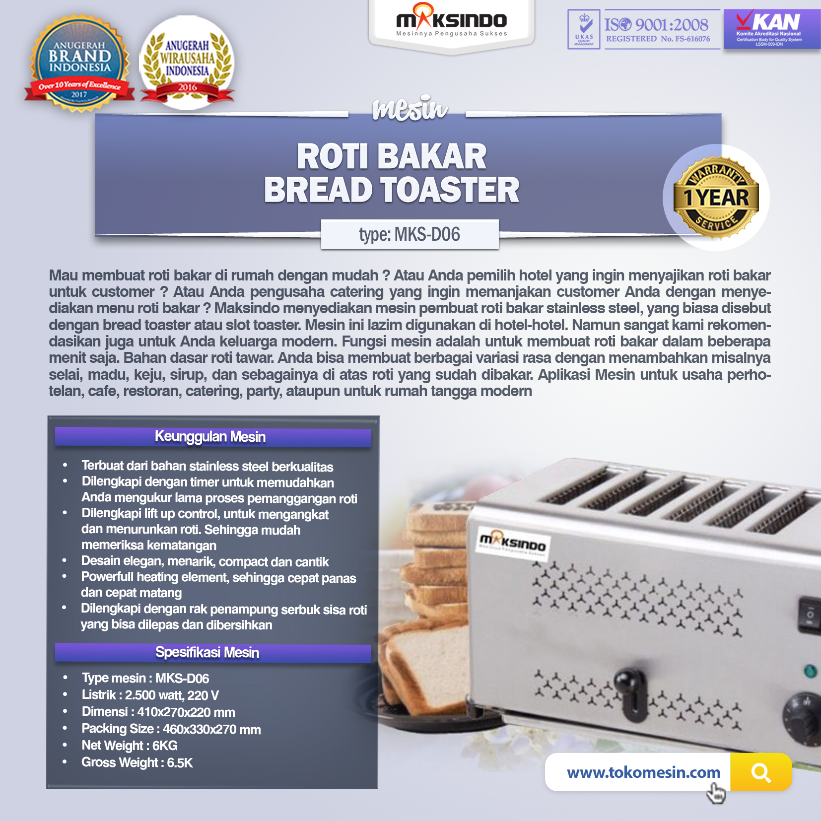 Mesin Slot/Bread Toaster (roti bakar / panggang) Type MKS-D06