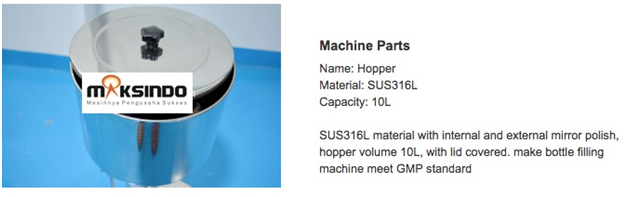 Dengan mesin ini, Anda bisa mengisi sebuah botol, misalnya botol kosmetik lotion, dengan ukuran yang sama dan dengan cara yang mudah dan cepat.
