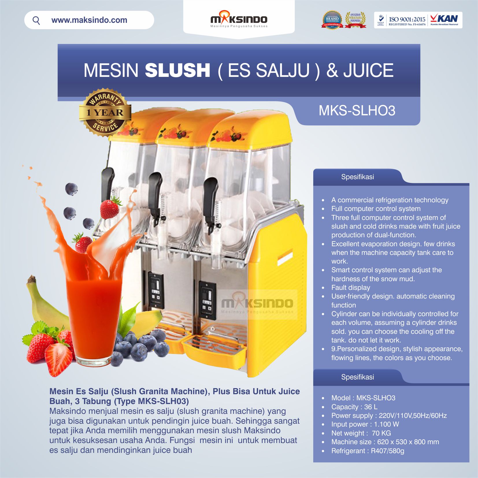 Spesifikasi Mesin Slush Maksindo 3 Tabung